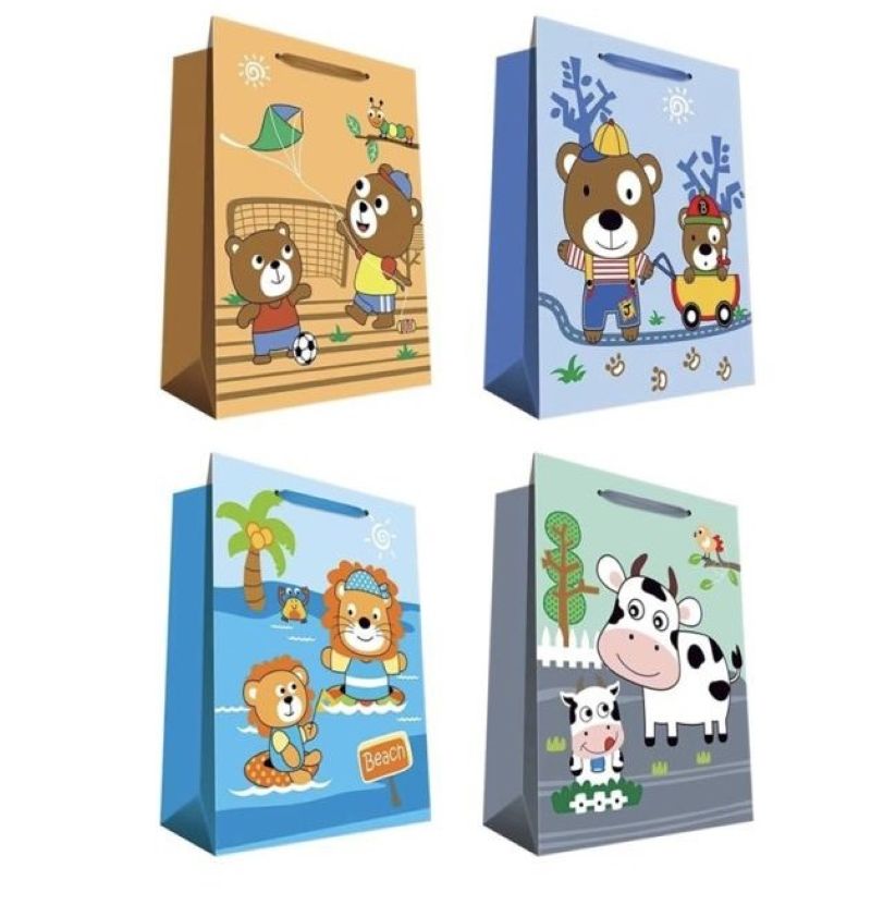 BOLSA IMPRESA CON FUELLE 32 x 40 cm 4 DISEÑOS CARICATURAS ANIMALES