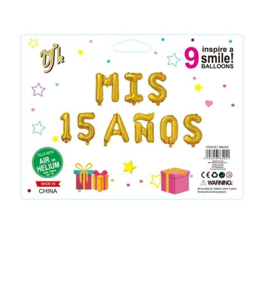 PACK 9 GLOBOS MIS 15 AÑOS DORADO