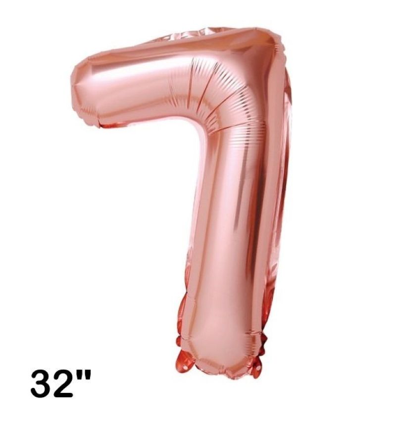 GLOBO ROSA GOLD NÚMERO SIETE 80 CM